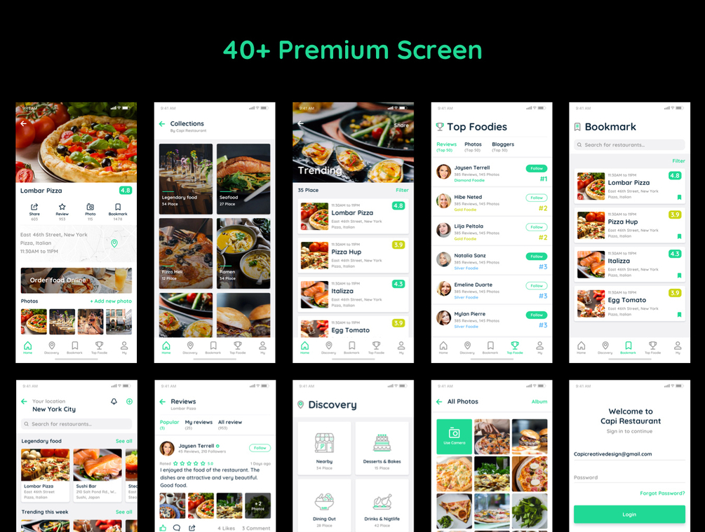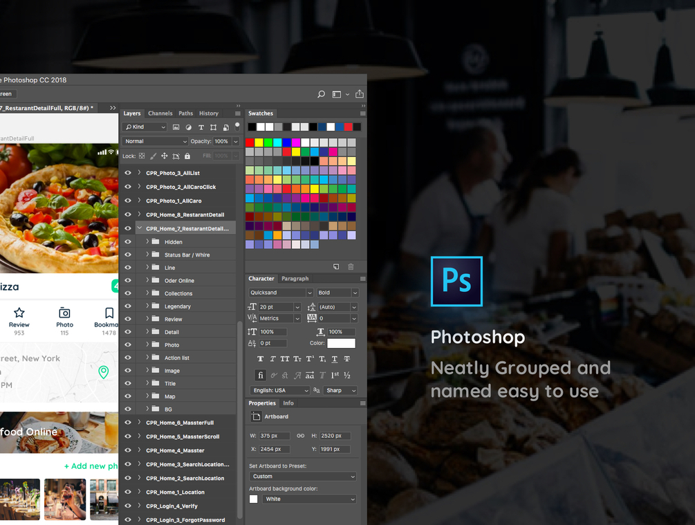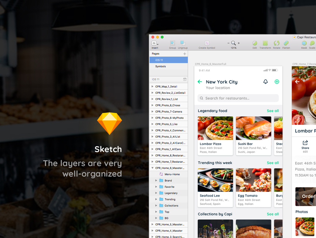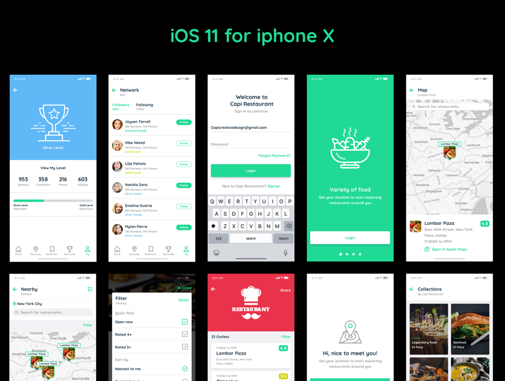 Capi Restaurant UI Kit is a high-quality pack of 40+ social app screens based on iOS 11 which will accelerate your design process and will help develop an outstanding experience. 100% Vector-Based, so all screens can be easily resized to fit other iPhone screens. Dimensions 375x812 and 375x667. Each screen is fully customizable, easy to use and handcrafted with love Sketch, XD and Photoshop. All layers and symbols are neatly grouped, named and organized. It also contains detailed instruction on how to customize colors, fonts and styles. Free Google fonts Quicksand. Made for everyone - Designers, Design Studios, iOS Developers. Be Creative, Be Awesome.