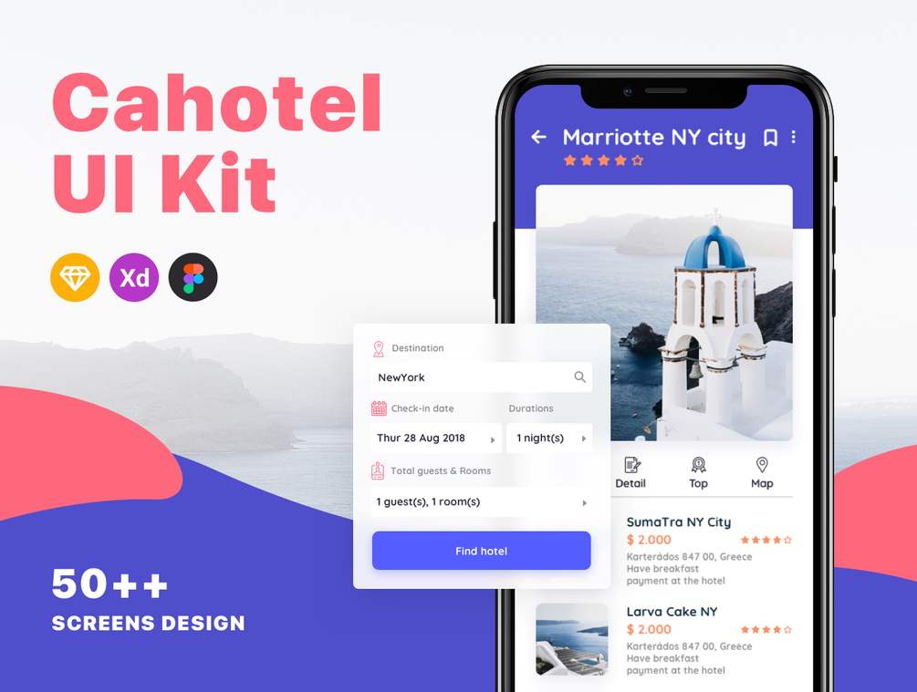 #Booking Hotel UI Kit for Mobile App in Sketch, Figma, Adobe XD