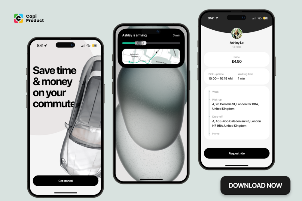 Explore the new car pool concept with text overlay design style displayed on the dynamic island