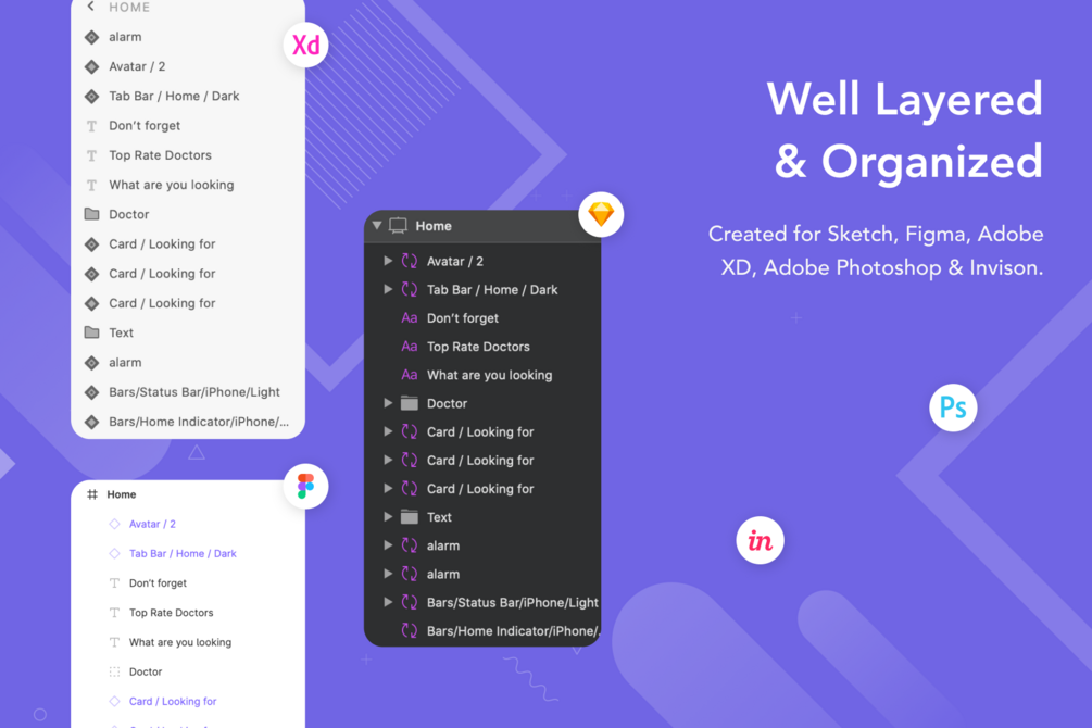 Created for Sketch, Figma, InVision, Adobe XD and Adobe Photoshop, these style guides are quick and easy to speeds up your app.