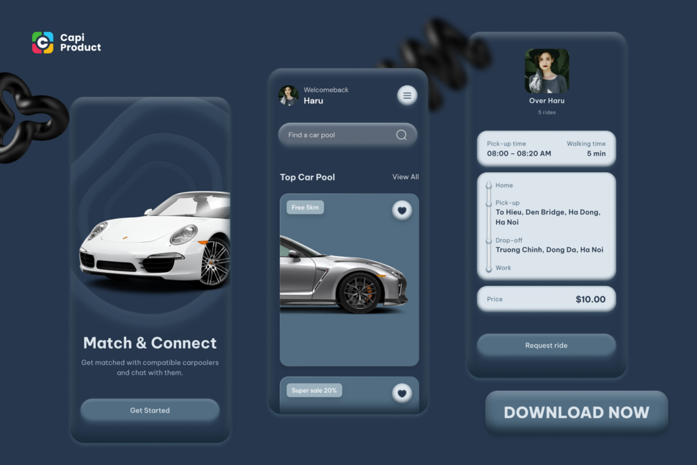 Another design shot for this week, this time we want to give you a carpool app with a 3D design style. What do you guys think of it?